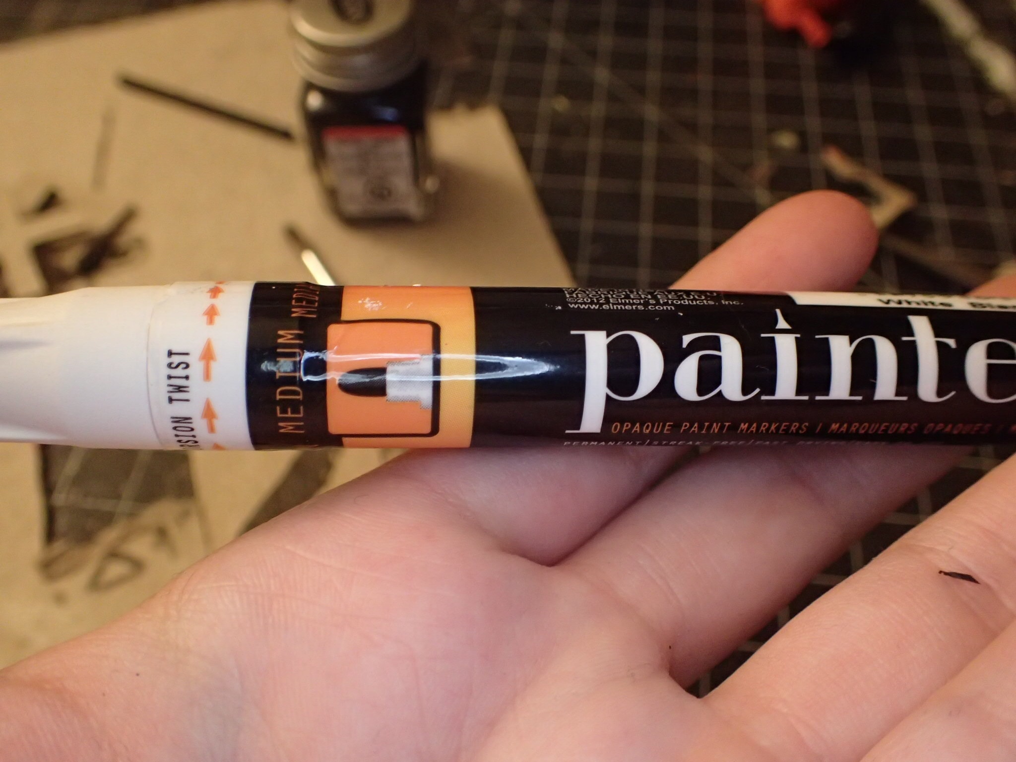 • Let the glue dry a bit, then paint the ‘x’ and arm white, and the circles, black.